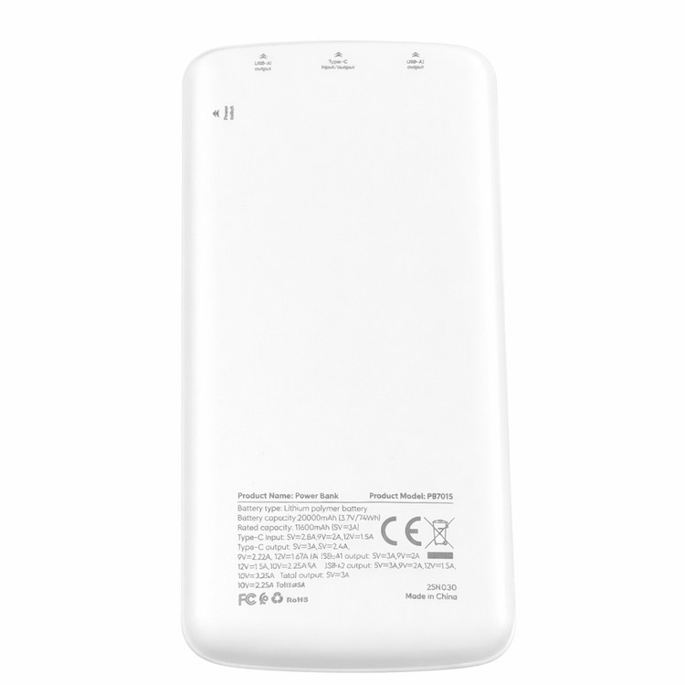 پاوربانک PB7015 دارای نشانگر LED میزان شارژ بوده و طراحی ساده، خوشدست و بدنه مقاوم آن، استفاده روزمره و حمل در کیف یا کولهپشتی را بسیار آسان میکند. وجود سیستمهای ایمنی داخلی از جمله محافظت در برابر افزایش جریان، ولتاژ و اتصال کوتاه، امنیت استفاده از این پاوربانک را تضمین میکند.