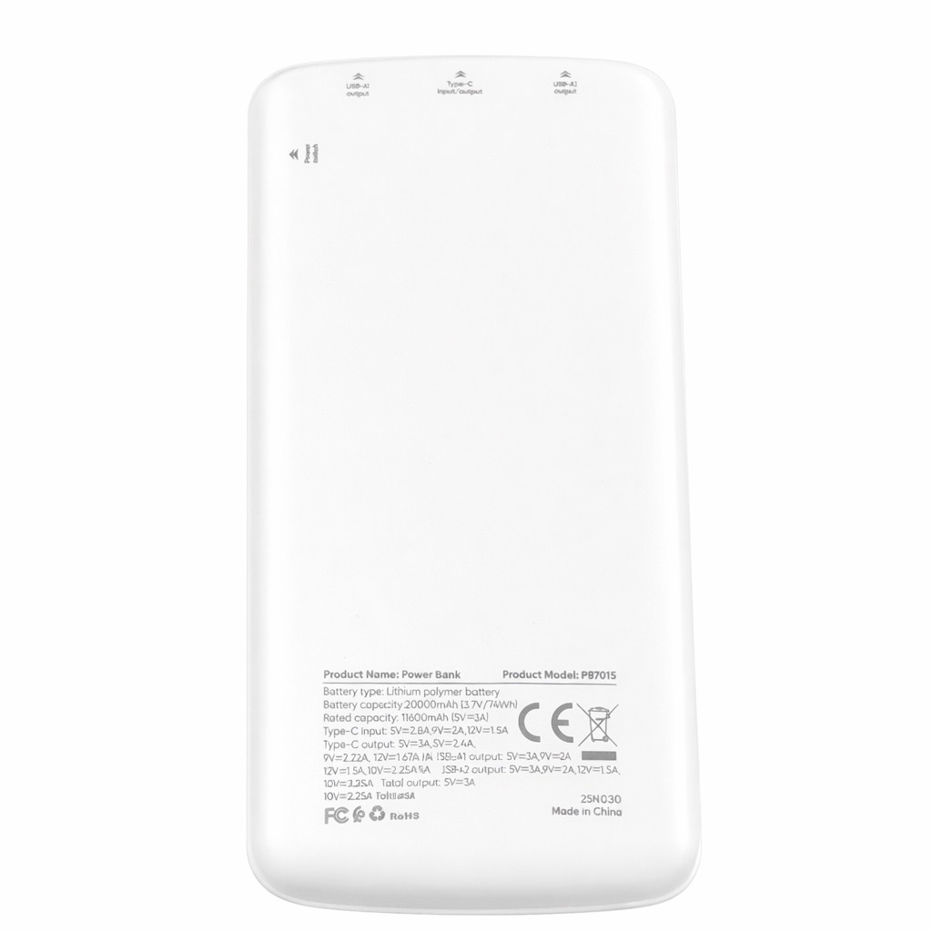 این مدل به یک درگاه Type-C با قابلیت ورودی و خروجی و دو درگاه USB-A مجهز شده و امکان شارژ همزمان تا سه دستگاه را فراهم میکند. پشتیبانی از شارژ سریع تا توان 22.5 وات باعث میشود دستگاههای سازگار در زمان کوتاهتری شارژ شوند. همچنین شدت جریان خروجی متناسب با دستگاه بهصورت هوشمند تنظیم میشود تا از باتری دستگاهها محافظت شود.